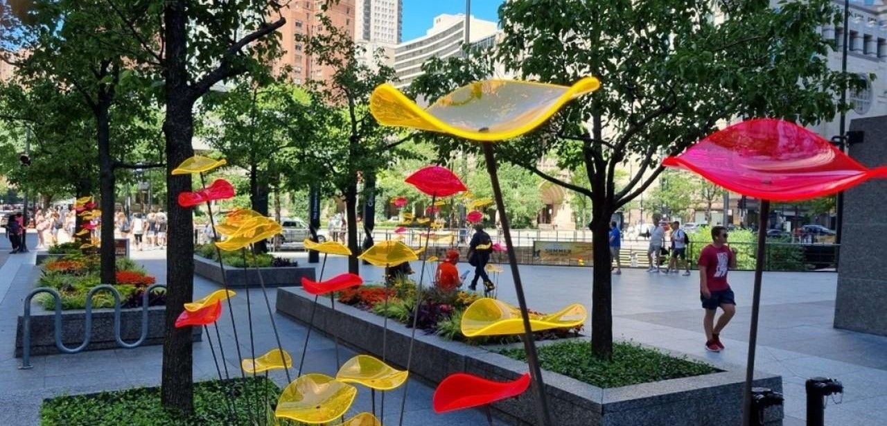 Die filigrane Konstruktion aus Glasfaserstäben verfügt über eine zurückhaltende Oberfläche in Grau, Weiß oder Schwarz und wird so zum neutralen Träger. Durch diese unaufdringliche Optik bleiben die farbenprächtigen Einzelelemente im Fokus, darunter schimmernde Glasdetails, glänzende Metallkomponenten oder farbige Acrylplatten. Sie wirken nahezu schwerelos und erzeugen im Wind eindrucksvolle Lichtreflexe. Diese Kombination ermöglicht eine puristische Ästhetik mit lebendigen Akzenten und subtilen Farbnuancen im Außenbereich sowie faszinierendes Zusammenspiel aus Transparenz und Struktur.