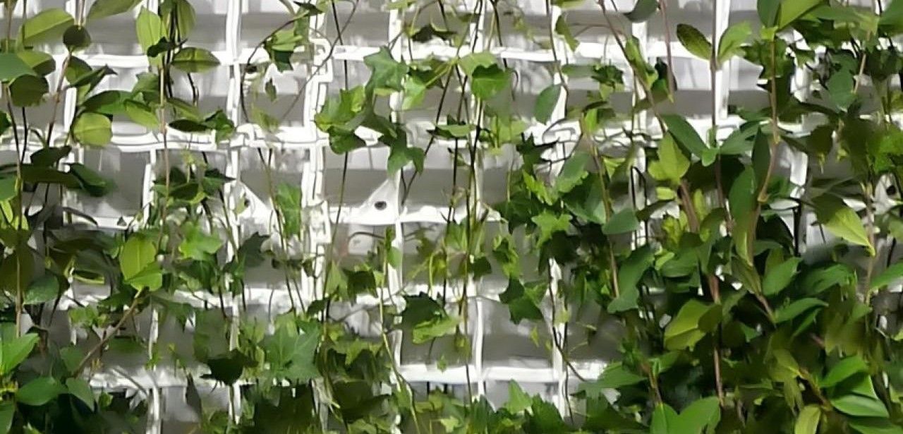 Montierte Rankgitter reduzieren Hitze, binden CO2 und sparen Energie
