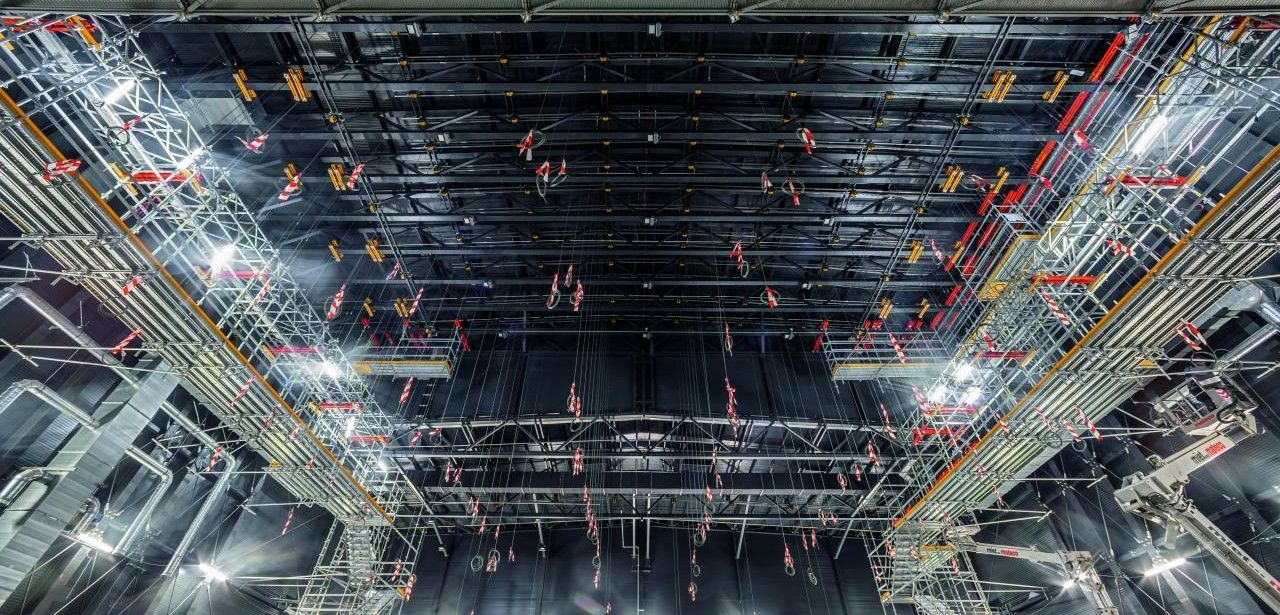 Eine wichtige Komponente der modularen Gesamtlösung für die Sanierung von Opernhäusern sind die PERI Baukastensysteme PERI UP und VARIOKIT. Mithilfe von Gerüst- und Schalungsmaterial können unsichtbare Beleuchterstege unterhalb der Hallendecke installiert werden, um den Zugang für Beleuchter und Tontechniker sicherzustellen. Im Zuschauerraum werden diese Stege auf schlanken Stütztürmen aufgelagert, während sie im Bühnenraum an der Dachkonstruktion abgehängt sind. Die Verwendung wiederverwendbarer Systembauteile ermöglicht eine einfache Montage ohne Kranunterstützung und gewährleistet einen Werterhalt der Konstruktion.
